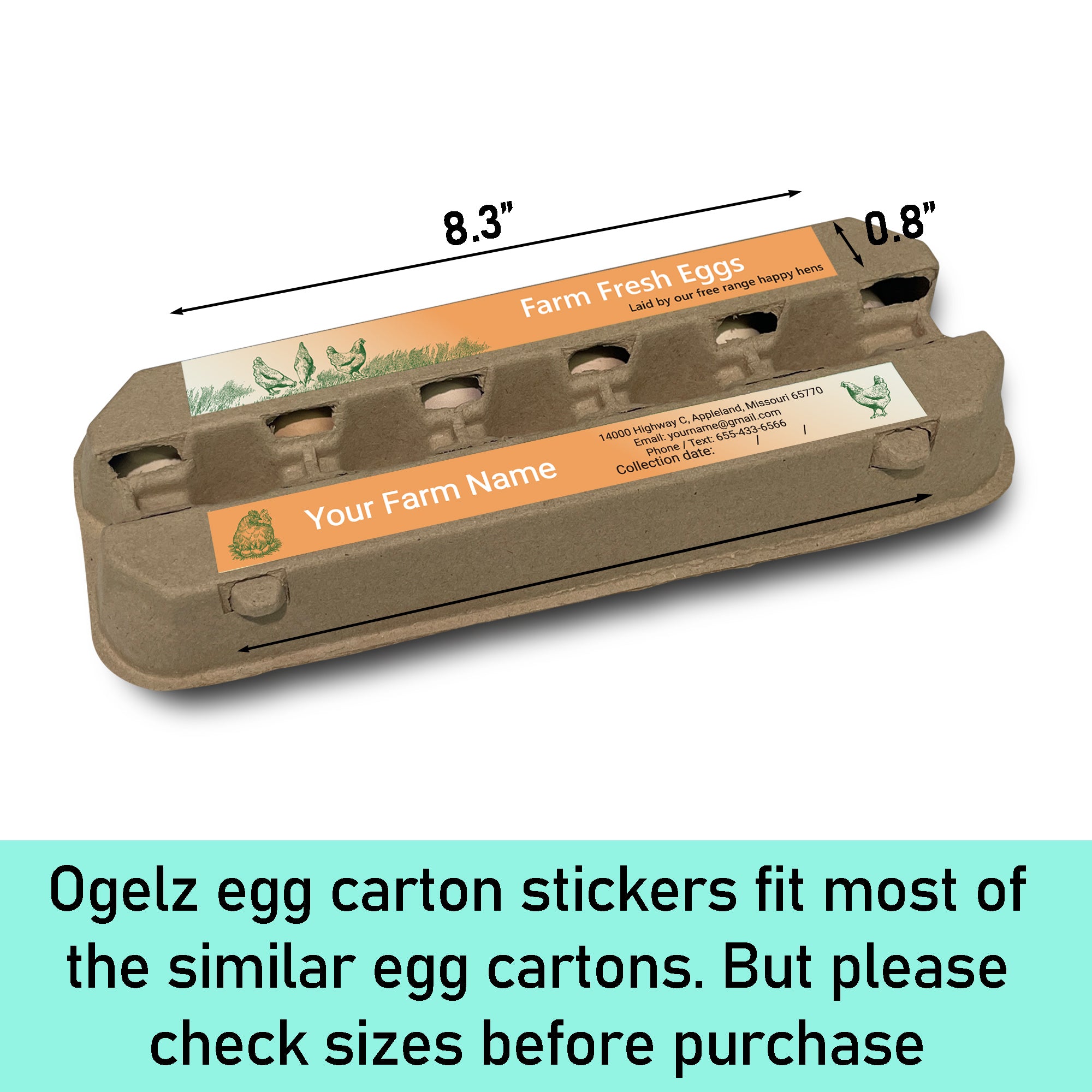 Ogelz 50-500 Pairs Customized Farm Fresh Egg Carton Labels Stickers For 12 Count Dozen Paper Pulp Chicken Duck Egg Cartons Waterproof Anti Scratches (Farm Design)